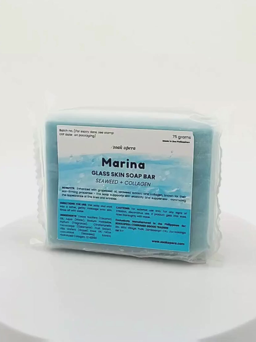 Say hello to luminous, dewy perfection with our Marina Glass Skin Soap — a luxurious natural soap infused with seaweed extract, collagen, Calamansi fruit, and coconut oil to reveal skin that radiates from within.